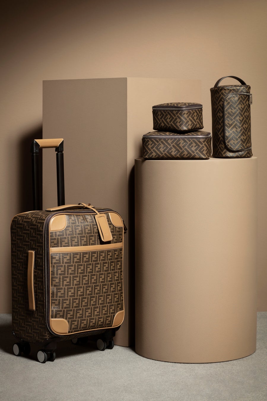 「オーロック」ロゴを思わせるレザーワークマンシップが施されたキャリーバッグが、オーガナイザーやポーチビューティーケースとともにこの新しい「フェンディ クラシック」ラインをスタイリッシュに完成させています。