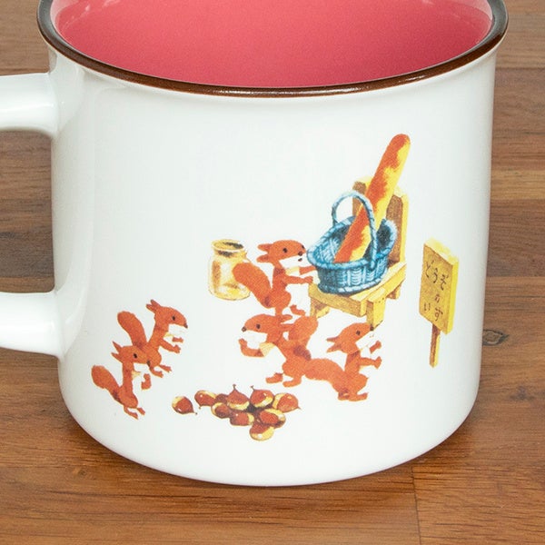 人気の秘密は、この存在感。見た目はホーローテイストですが、美濃焼で作られたずっしりと頼もしいマグカップです。そして何と言っても一番の魅力は、”大好きな絵本のデザイン”であること。