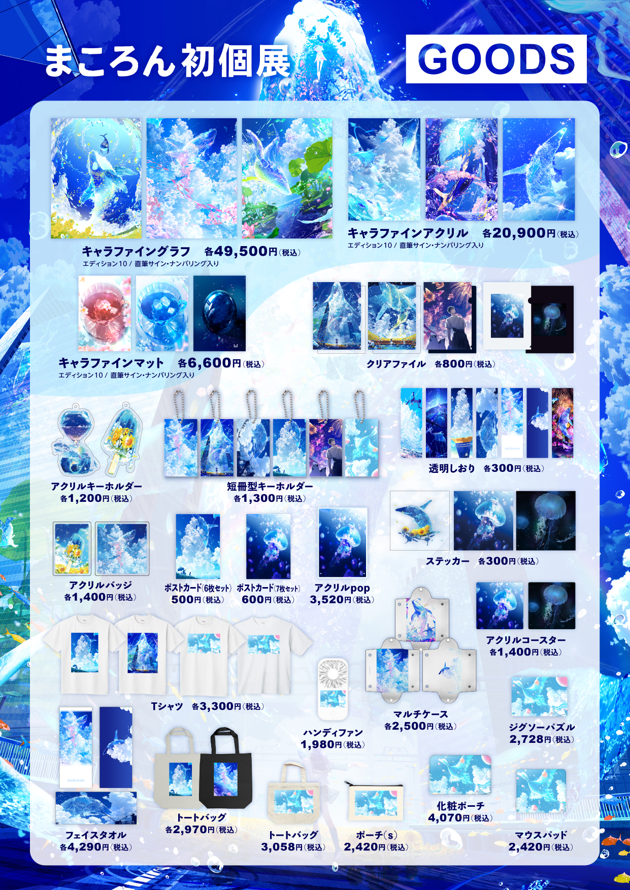 玄光社から8/7に発売される『まころん画集 ソラノキオク』を会場限定特典付きで先行販売。また、直筆サイン・シリアルナンバー入り豪華なアクリルパネルなど新作商品を販売。