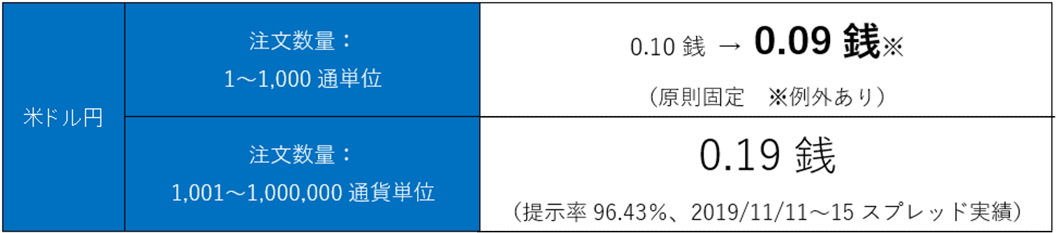 米ドル/円スプレッド縮小のお知らせ ~第1区分のスプレッドを0.09銭に縮小、未体験の領域へ!~