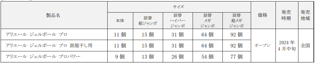 P&Gジャパン(本社:神戸市)は、衣料用洗剤ブランド『アリエール』の「アリエール ジェルボール4D」シリーズ全3種類を改良し、「アリエール ジェルボール プロ」として2024年4月中旬より新発売いたします。