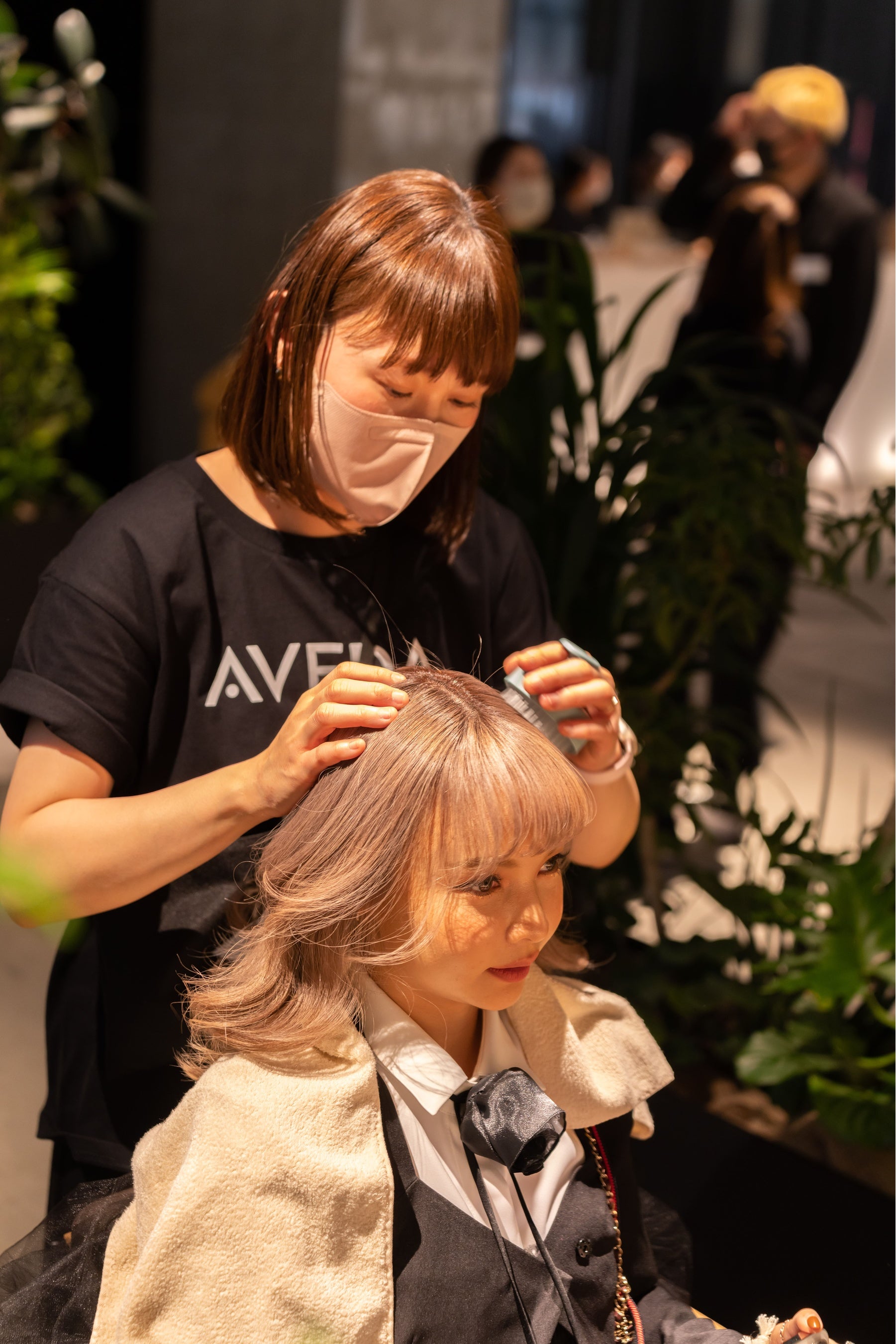 アヴェダのトップカラーリストとして、自然由来成分でありながら、多彩な色表現をかなえるアヴェダカラーで、そのカラーテクニックやレシピを惜しみなく披露。来場者はQRコードを読み取り、彼のテクニックを学ぶことができるラーニングスタイルも兼ねたショーになっており、興奮と真剣な眼差し、熱気に包まれながらフィナーレを迎えました。