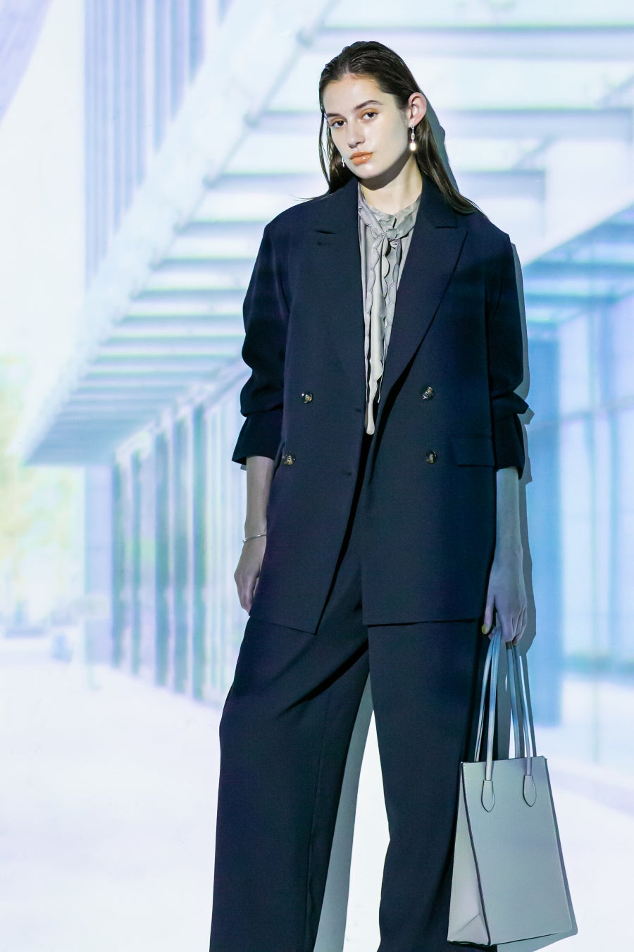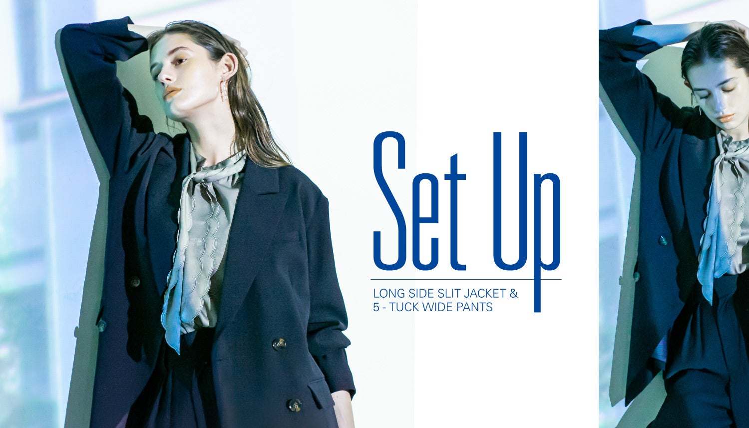 ラクにきまるセットアップは、オフィスから休日スタイルまで、幅広く着まわせる万能アイテム。