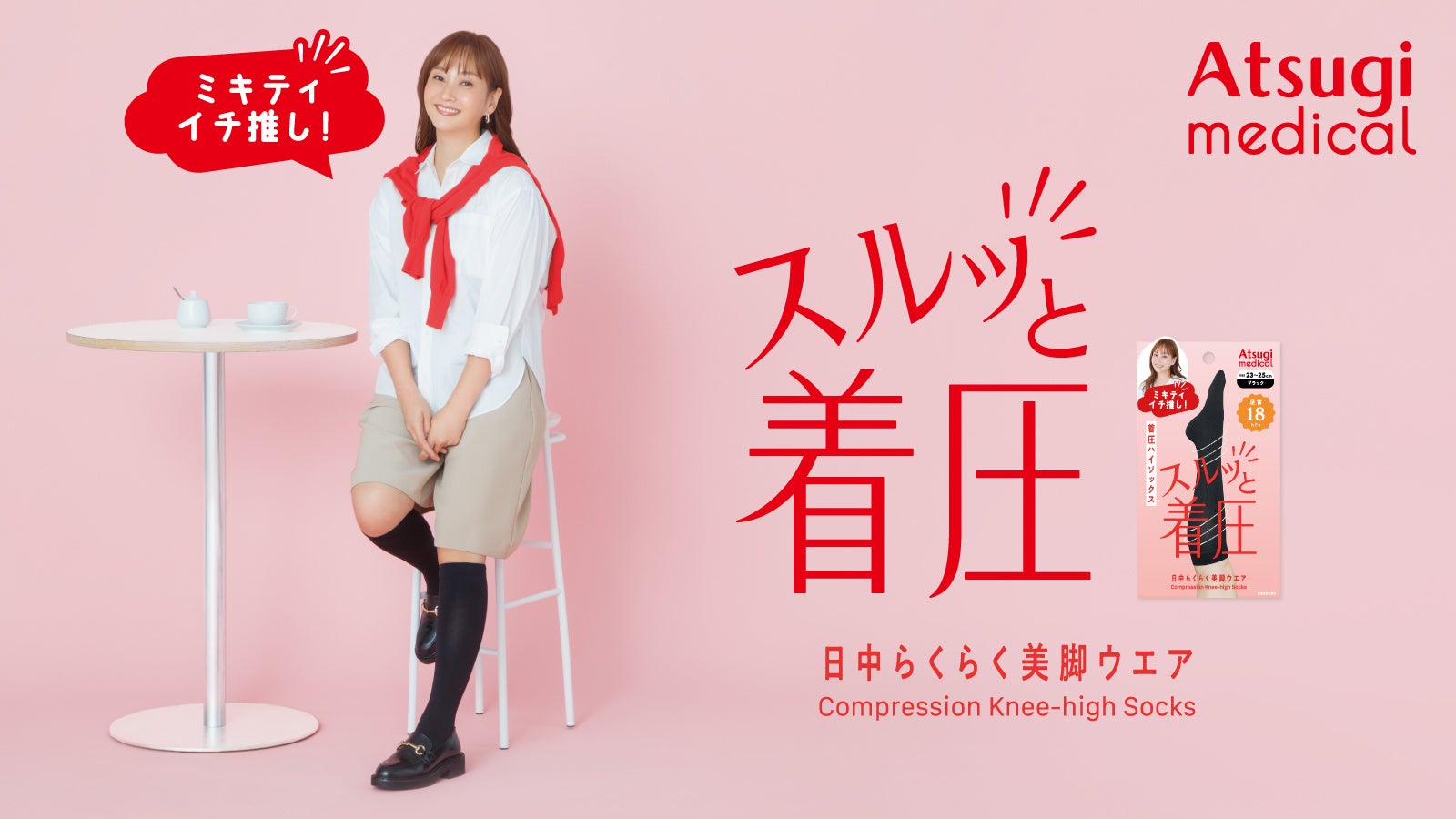 Atsugi Medicalのブランド「スルッと着圧」が目指すのは、忙しい毎日を過ごす女性の脚もとに「スルッと」はける美脚ケアアイテムとして寄り添うこと。憧れの存在でありながら親しみやすいイメージを持つ藤本さんを通じて発信することで、忙しい毎日の中でも楽に続けられる美脚ケアの新習慣を後押ししたいと考え、イメージキャラクターに就任いただきました。