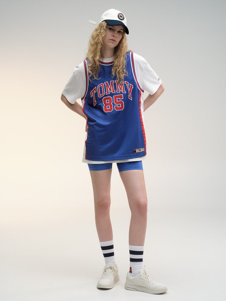 モダンに生まれ変わったクラシックな18スタイルで構成されるこのコレクションには、メンズ、ウィメンズ、そしてジェンダーレスなカラーブロックのショーツ、ウォームアップジャケット、ランニングシャツなど陸上競技にインスパイアされたスタイルが揃います。コレクションのカラーには、トミー ヒルフィガーのシグネチャーカラーであるレッド、ホワイト、ブルーに、大陸間の団結を表す黄色、黒、緑の組み合わせを採用。コレクションのハイライトは、コレクションカラーで肩と腕がストライプになったアイコニックなラガーシャツや、アーカイブのバーシティジャケットに全くの新しさと取り入れたアレンジしたジャケット、ヴィンテージのボートレース用ウィンドブレーカーをインスピレーションにモダンなアレンジを加えたシカゴのセーリングジャケットなど。クラシックなバスケットボールのジャージやスラムダンクを現代風にアレンジしたメンズのメッシュトップには、TOMMY 85の文字が刻まれています。