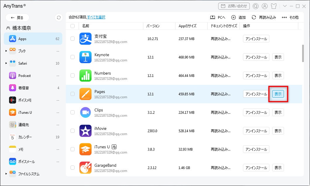 AnyTransというソフトウェアは、iOSデバイスの中身にアクセスして、全てのアプリのファイルやデータをプレビュー・移行することができる便利なツールです。もちろん、アプリのデータも簡単に抽出できます。