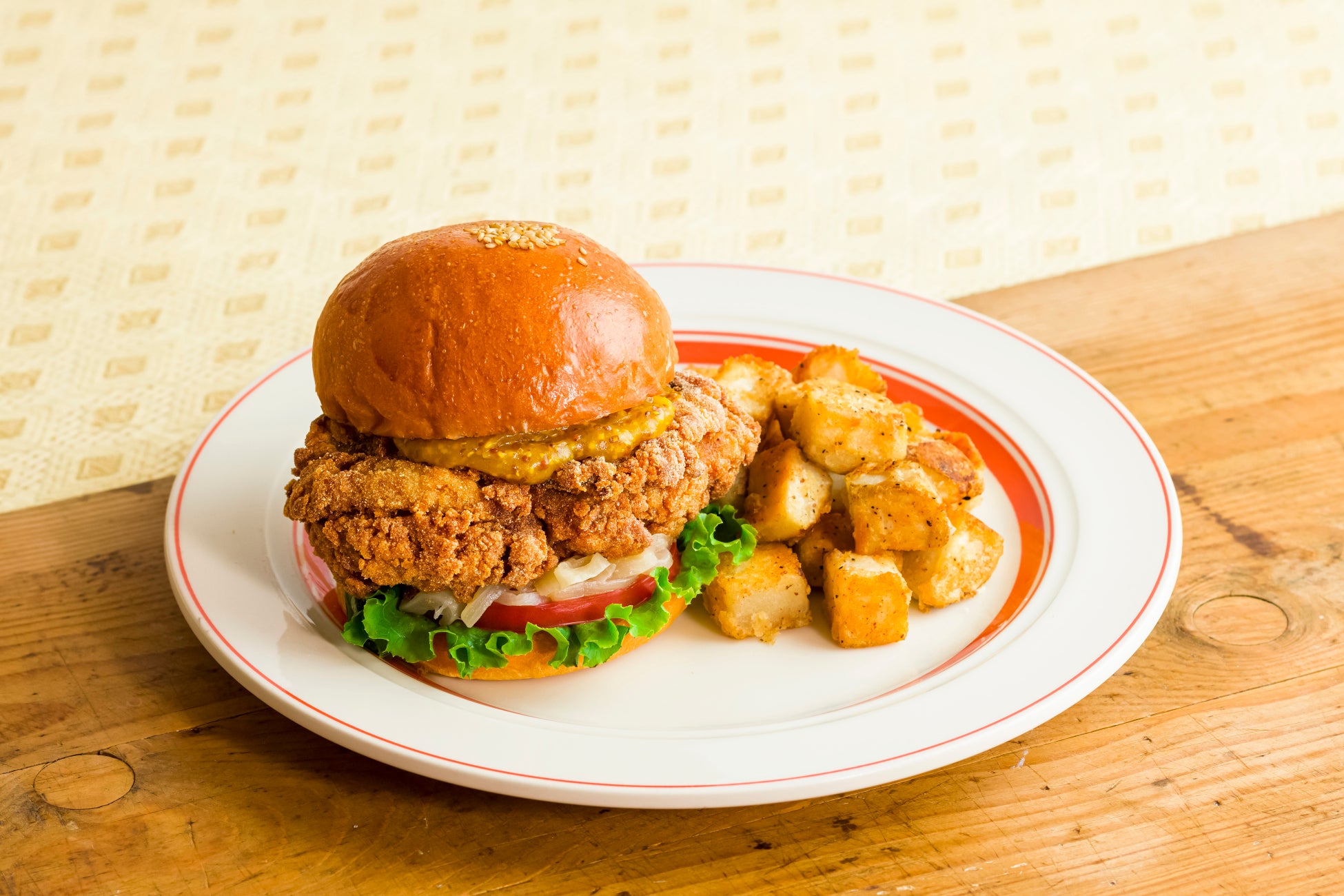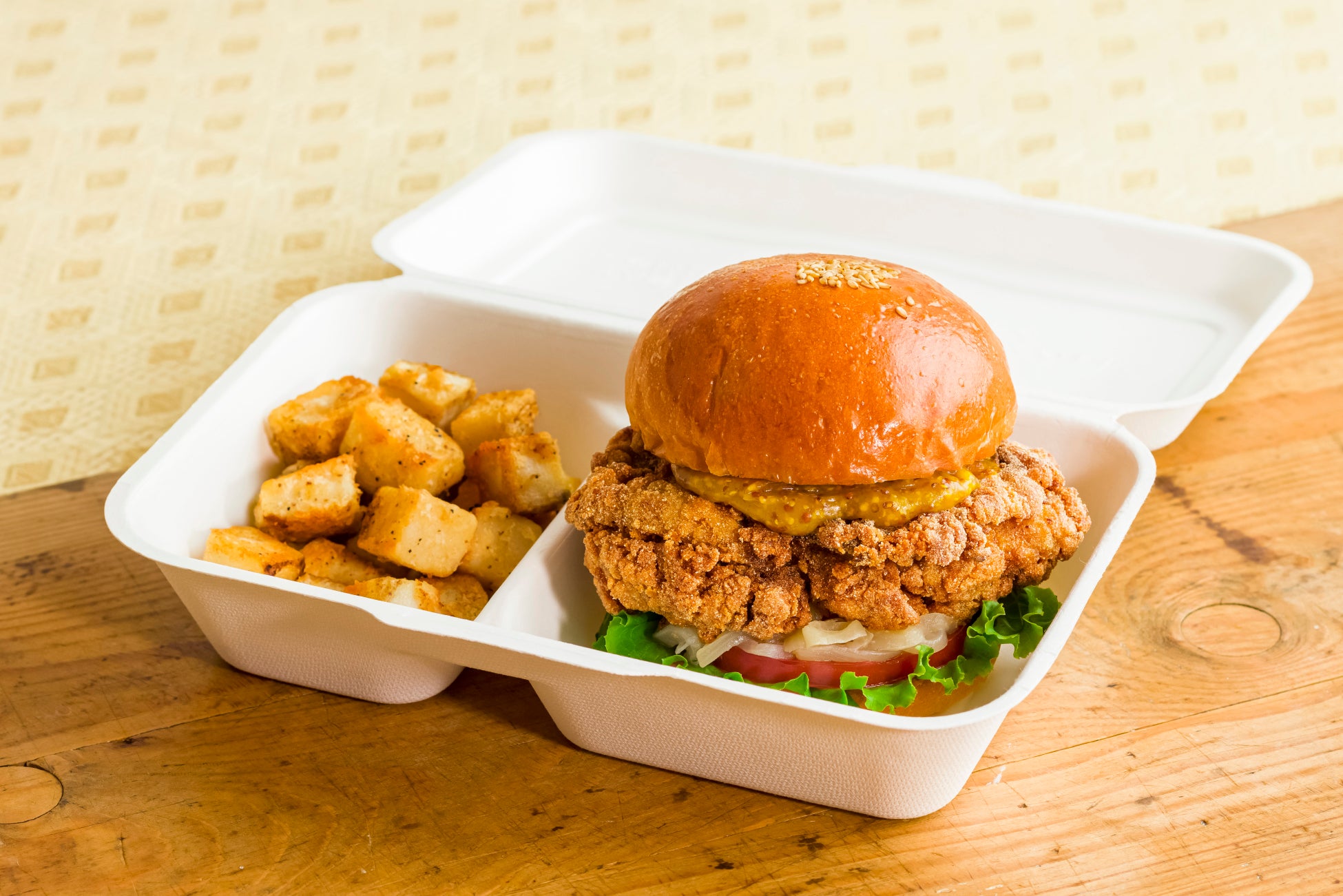 人気のモチコフライドチキンとまろやかに仕上げたハニーマスタードを香りの良いブリオッシュバンズで挟んだ一品。