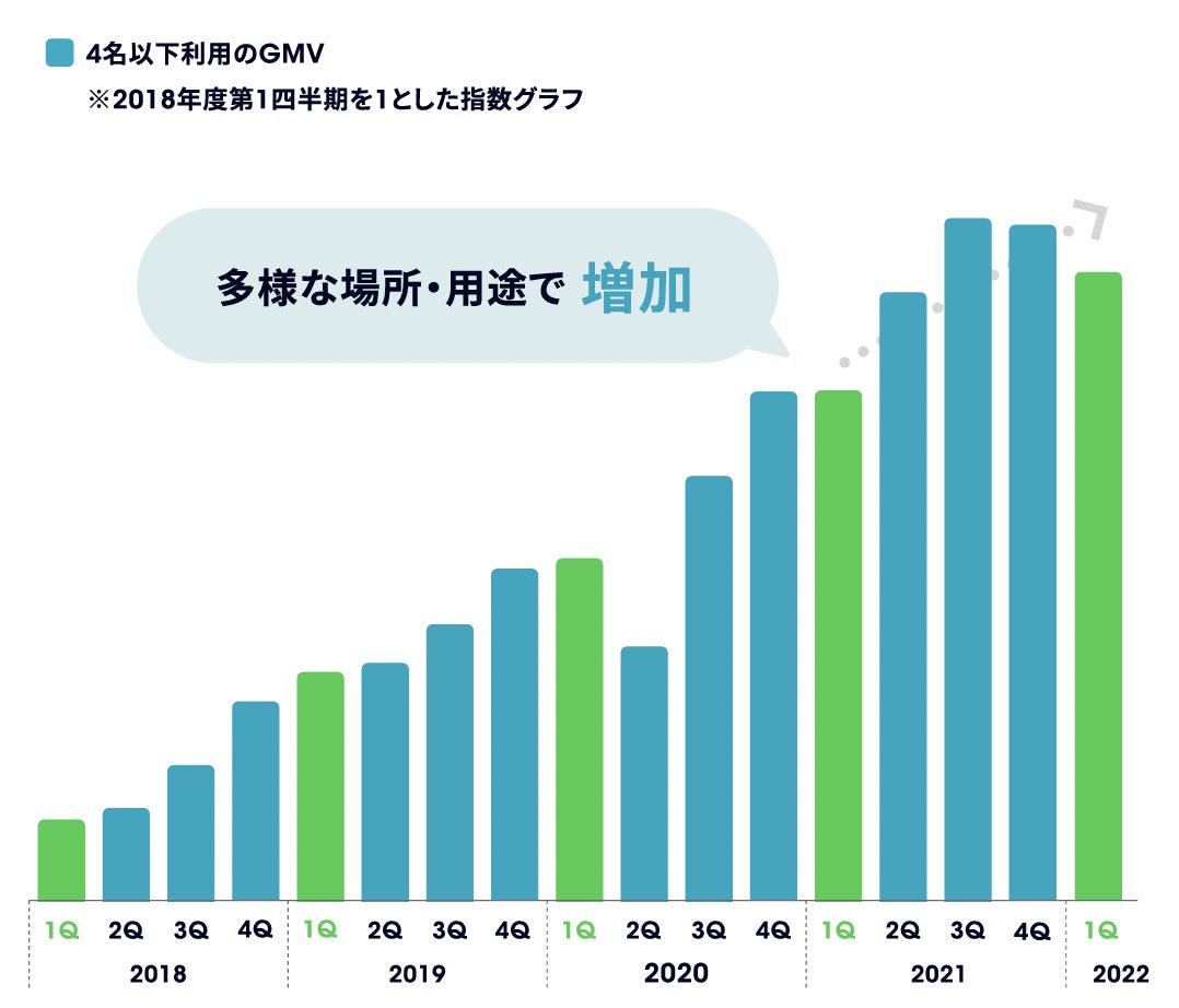 一方、スペースマーケットは多様な用途で利用されていますが、特にコロナ禍では4名以下の少人数で集まるシーンが増えています。友人たちと集まりたいというニーズと、「貸切空間で周囲を気にせずに過ごしたい」「感染対策がされた場所で過ごしたい」といった理由から、多くの方に「おうちスペース(※2)」をご利用いただいています。