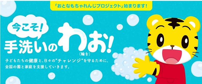 ベネッセの幼児の教育・成長支援ブランド「こどもちゃれんじ」が実施する、手洗いの大切さを啓発するプロジェクトです。本活動に賛同する6社と協業し、子どもたちが過ごす園、家庭、さらにお出かけ先と、社会全体で手洗いが習慣化できる環境づくりを支援します。