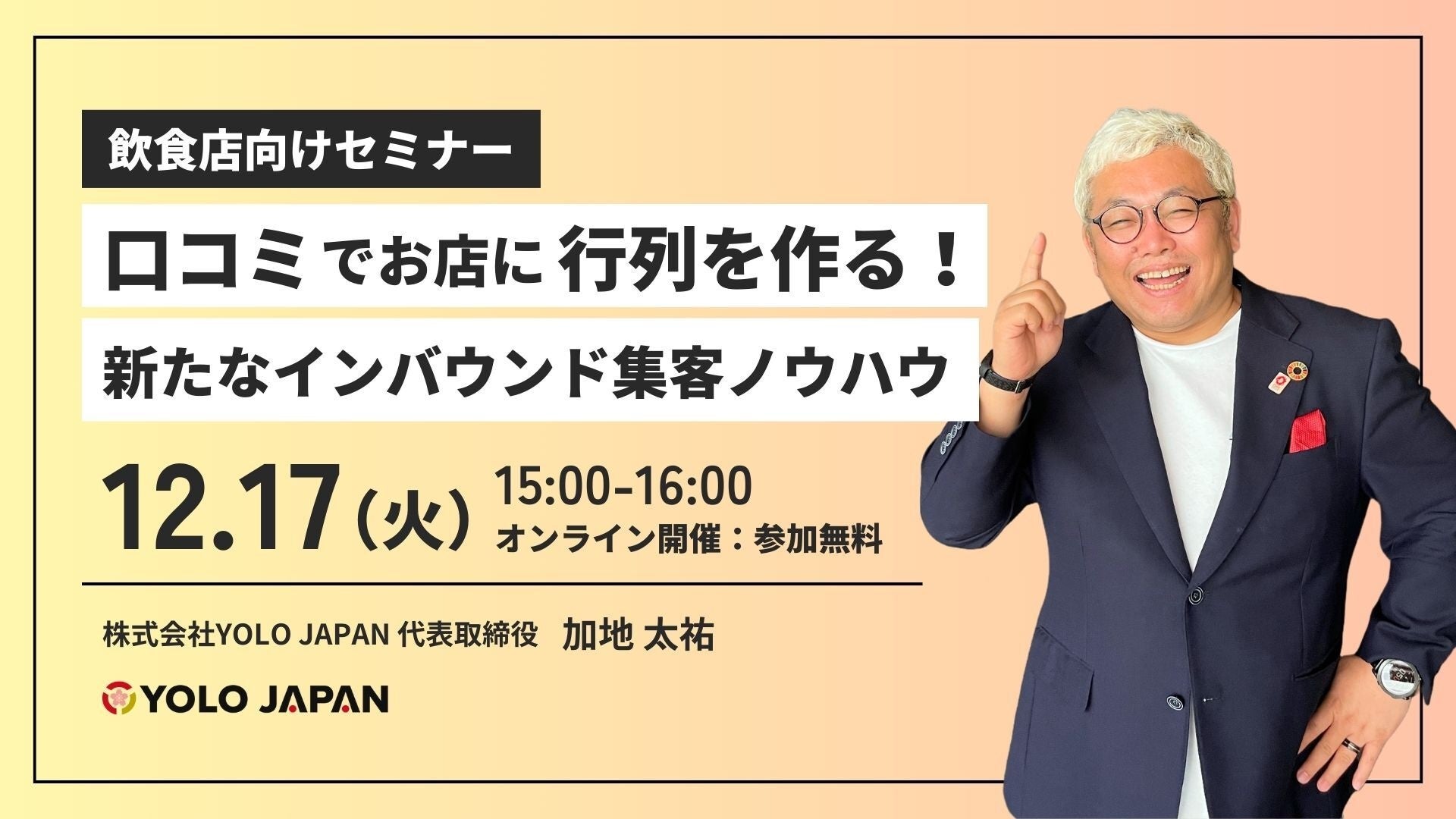 【12/17(火) 開催】「口コミでお店に行列を作る!新たなインバウンド集客ノウハウ」無料ウェビナー|株式会社YOLO JAPAN