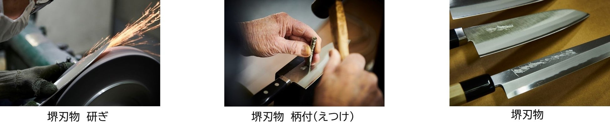 ブース概要 | 大阪府堺市は、16世紀後半から包丁づくりが盛んな土地で、熟練した職人技から生み出される堺打刃物は抜群の切れ味を誇ります。古くから堺打刃物の製造は分業制が確立しており、鍛造(たんぞう)、刃付(はつけ)(研ぎ)、柄付(えつけ)により一本一本丁寧につくられ、世界中のプロの料理人に愛用されています。今回は、「郷右馬允義弘(ごううまのすけよしひろ)」という包丁をご紹介します。刃先に炭素鋼を挟み込んだ三徳包丁で、切れ味が良く、また砥ぎ直しも用意なことからふるさと納税返礼品としても人気があります。 |