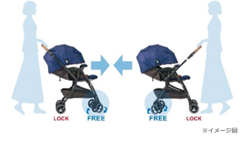 常に進行方向に対して前輪が回転するので、対面押しでも背面押しでも押しやすい。