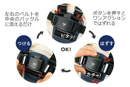 急いでいる時や赤ちゃんの機嫌が悪い時でも、マグネットの力でパッとくっつき、ワンタッチで外せるので、簡単・時短にベルトを装着できます。