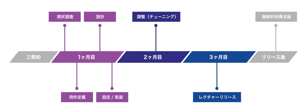 要件定義から設計・実装、リリースまでを約3カ月で完了。スピーディな立ち上げを支援します。