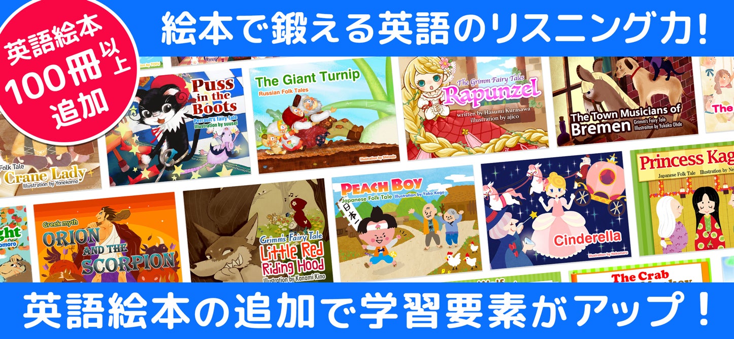 これまで「森のえほん館」は、日本語の絵本作品を配信してまいりましたが、小さなお子様の知育教育により特化したアプリを目指す想いから、新たに100冊以上の英語絵本もご利用いただけるようにリニューアルし、より学びの多いアプリへと生まれ変わりました。お子様におなじみの昔話・童話を日本語に加え、英語でも楽しんで触れることによって、日本語にはない英語の音やリズム、イントネーションを自然に学ぶことができ、「活きた英語」を習得する手助けとなるものと考えております。グローバル化社会でのコミュニケーション力を養うために、お子様に英語を学ばせたいとお考えの親御様にとっても非常に有用なツールになっております。