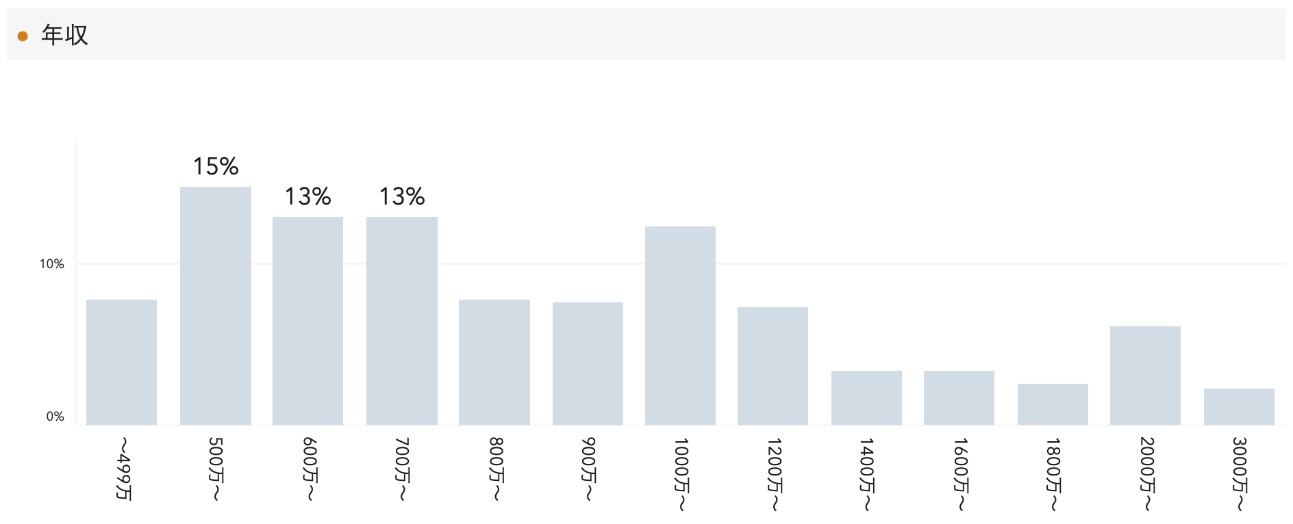 ボリュームゾーンは500万円台が15%(前月比9ptダウン)、600万円台と700万円台が同率で13%となっています。
