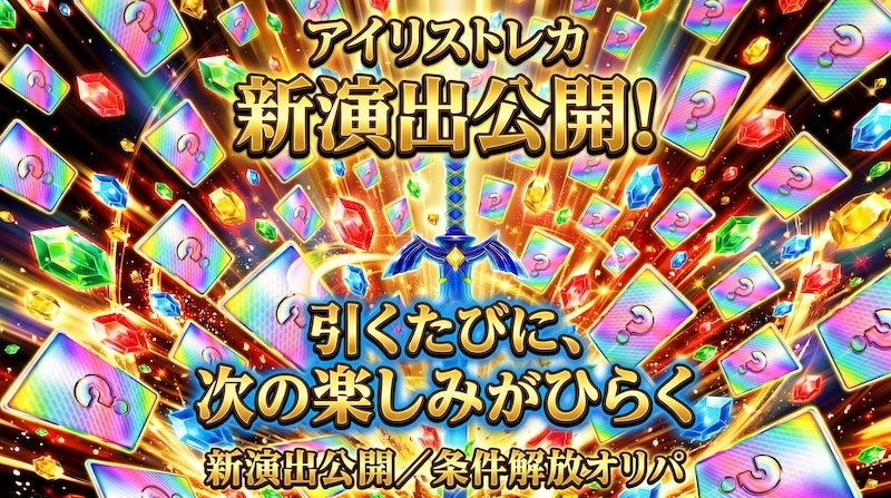 アイリストレカでは、オリパの魅力を「結果」だけでなく、「引く過程そのものの楽しさ」まで含めて届けることを重視しており、今回の新演出もその一環として実装するものです。オリパを引いた際の期待感や楽しさをより強く感じられるようにすることで、オンラインならではの楽しみ方の幅を広げてまいります。