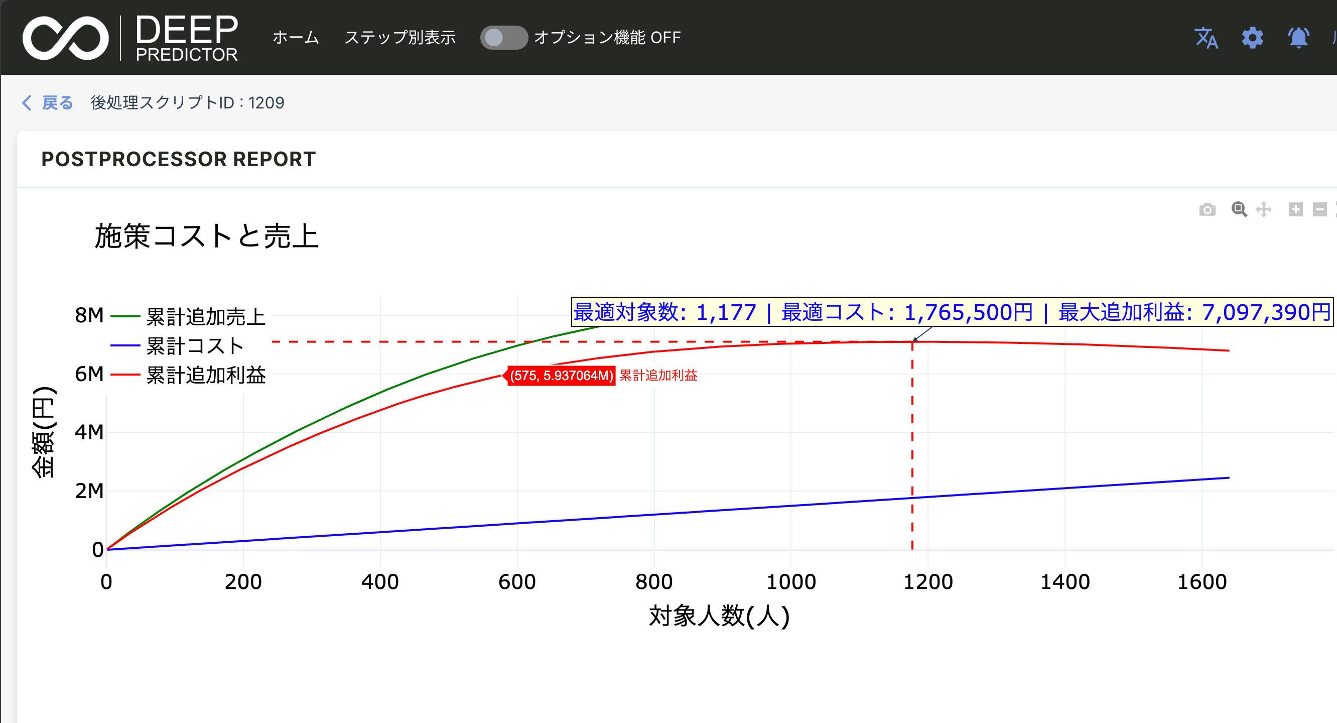 施策の費用対効果の明確化:AI予測から施策効果をグラフで即時確認