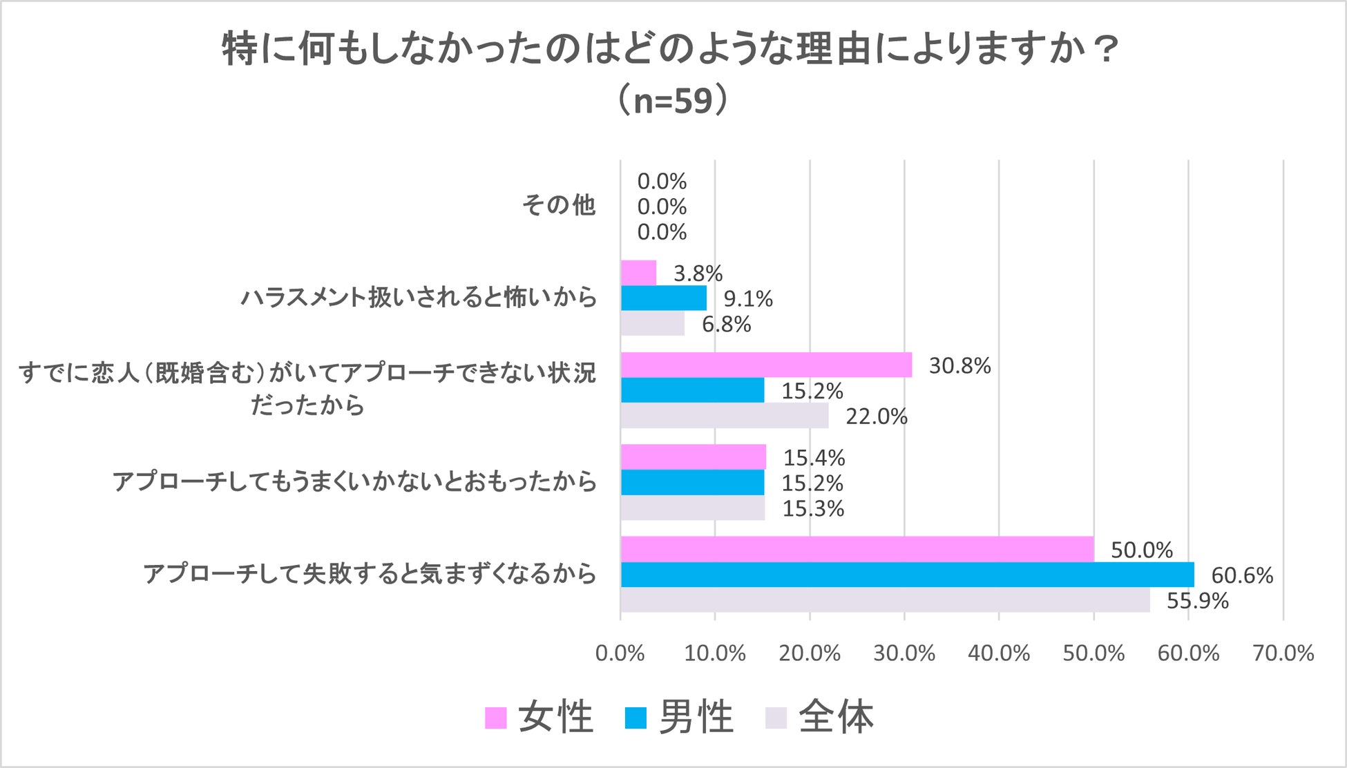 (4)「特に何もしなかった」理由で最多回答は「アプローチして失敗すると気まずくなるから」