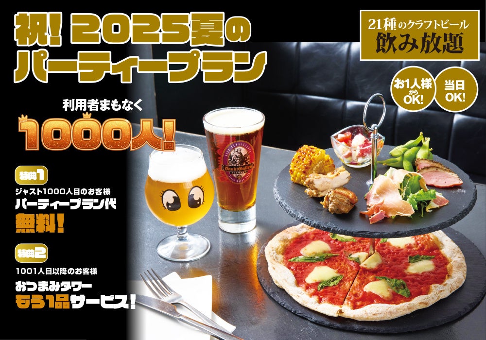 サンクトガーレン タップルーム、夏のパーティープラン延べ利用者数1000人達成間近! 1000人目のお客様は無料、1001人目以降のお客様も特典付き<プランは10/19まで延長>