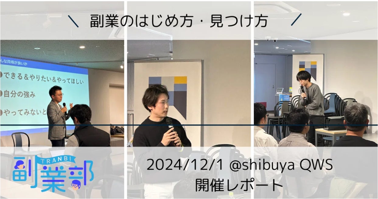 M&AプラットフォームTRANBIが運営するコミュニティ「TRANBI副業部」|副業のはじめ方を学ぶ!12月1日@渋谷で開催されたイベント「副業のはじめ方・見つけ方」レポート