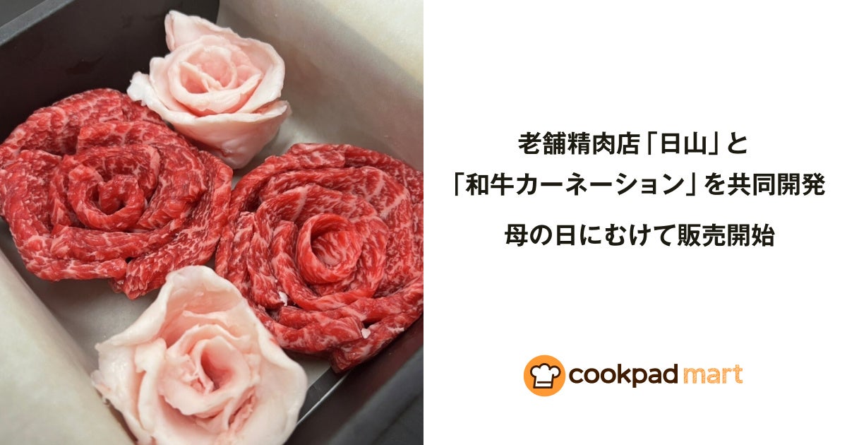 クックパッド株式会社が提供する生鮮食品EC「クックパッドマート」は、東京日本橋人形町の老舗精肉店「日山」と母の日向けギフトセット「和牛カーネーション」を共同開発し、2022年4月28日(木)より、販売開始しました。