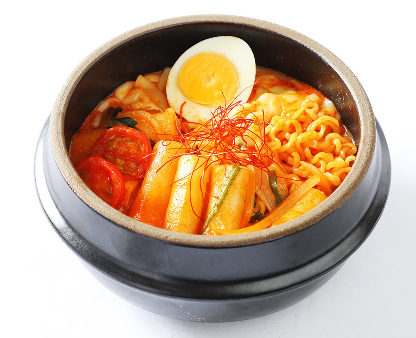 トッポギ(韓国もち)、チーズ、ちぢれ麺にほどよい辛味のクリー