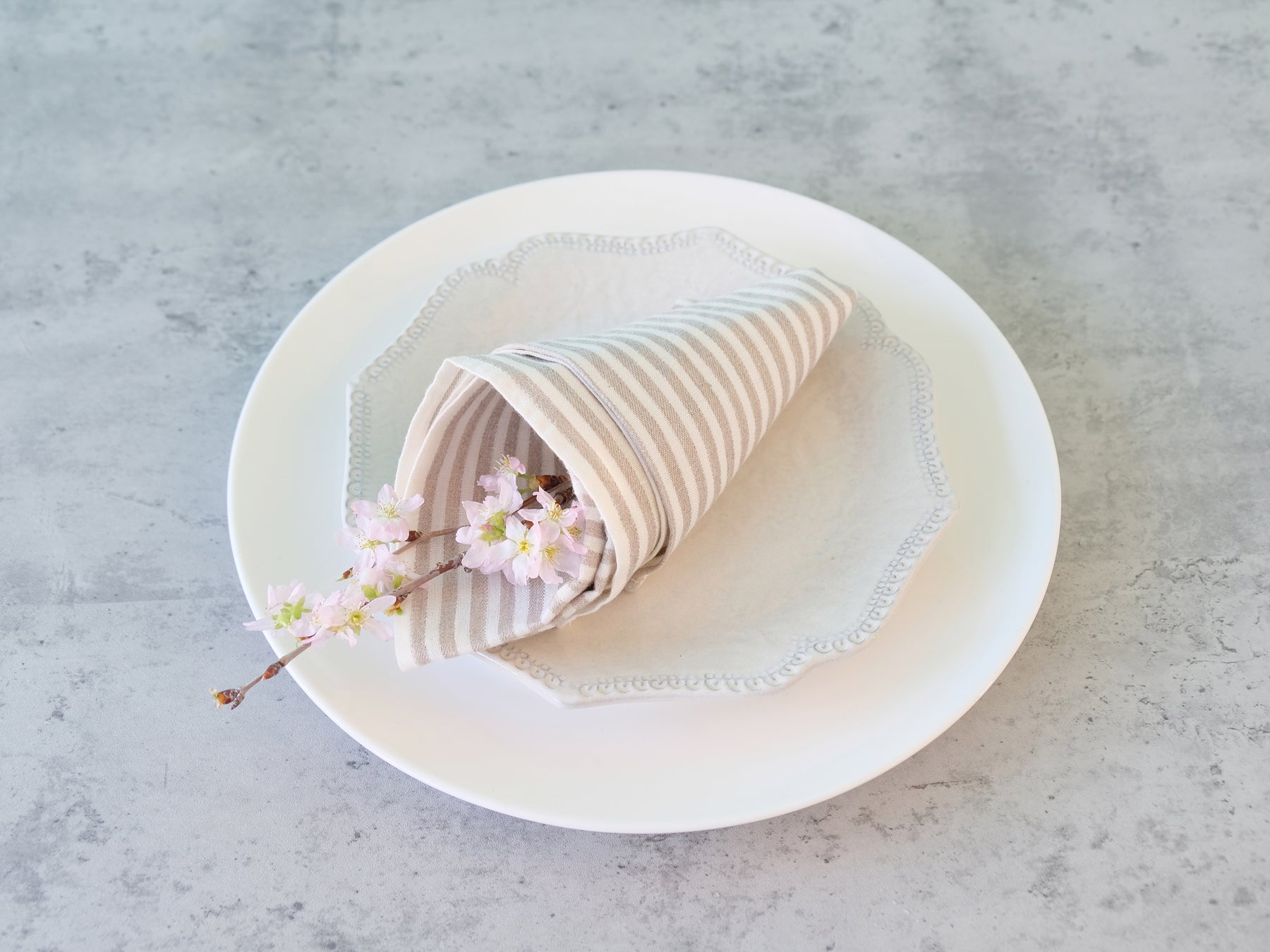 左:大切なゲストへおもてなしの心を込めて。お皿に小さな一枝を添えてみました。