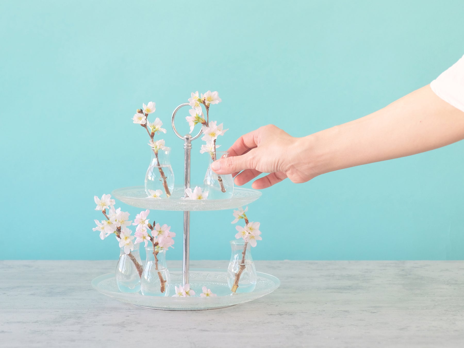 長持ちさせるポイントは、切り口を新しくして水を吸いやすくすることです。ただ、桜は枝ものなので、ハサミで簡単に切れるものもあれば、思い切り力を入れなければ切れない固いものもあります。枝が太くて切り戻しをするのが大変な時は、切り口に十文字にハサミを入れると、吸水面が広くなり、水をたくさん吸って花も長持ちします。水替えの際にぜひ切り戻しを行ってみてください。また、長さは基本的に短い方が花持ちも良くなります。花がくたびれてきたら思い切って枝の長さを短くしてみましょう。