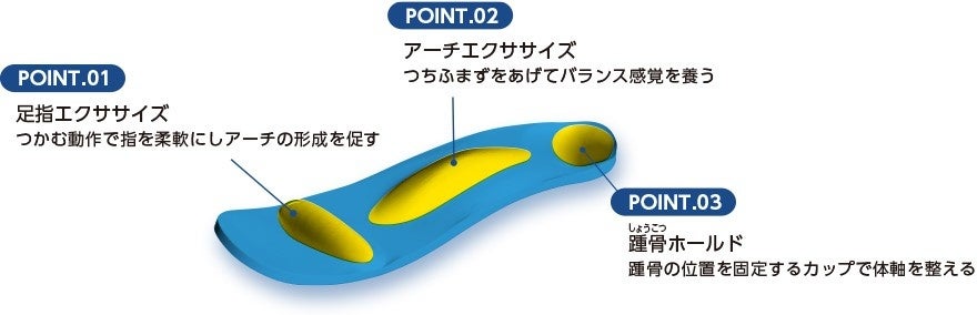 アーチパッドがつちふまずを支え、バランス感覚を養う。