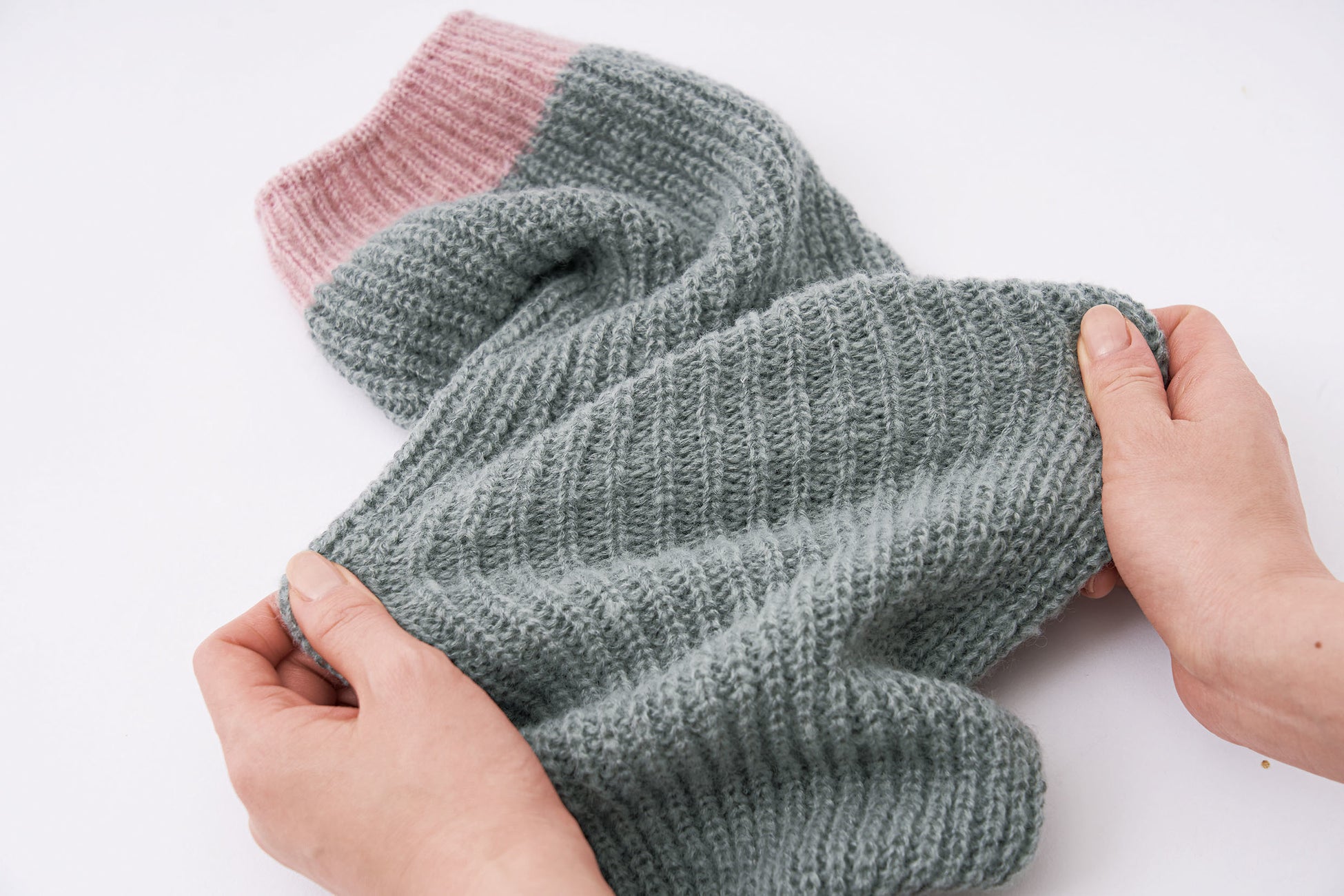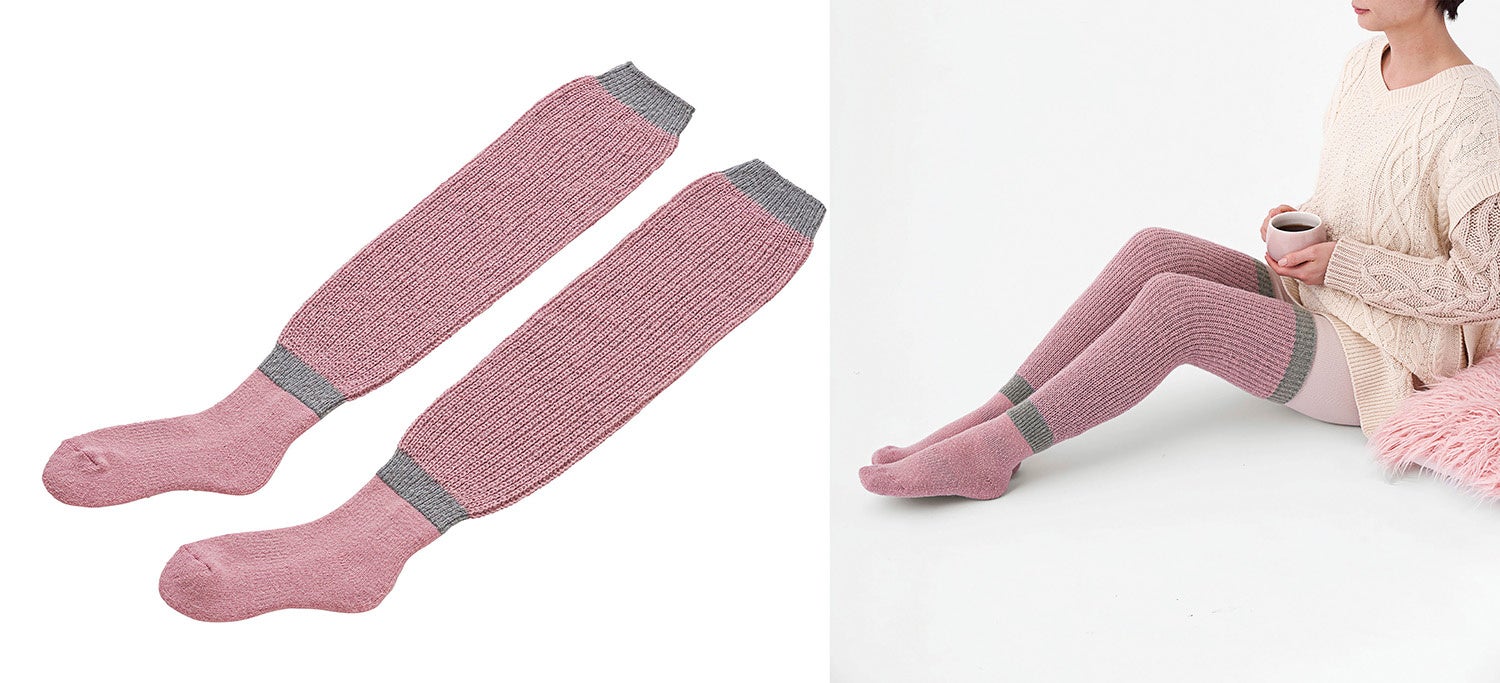 備長炭くつろぎ脚のセーター ピンク/グレー
