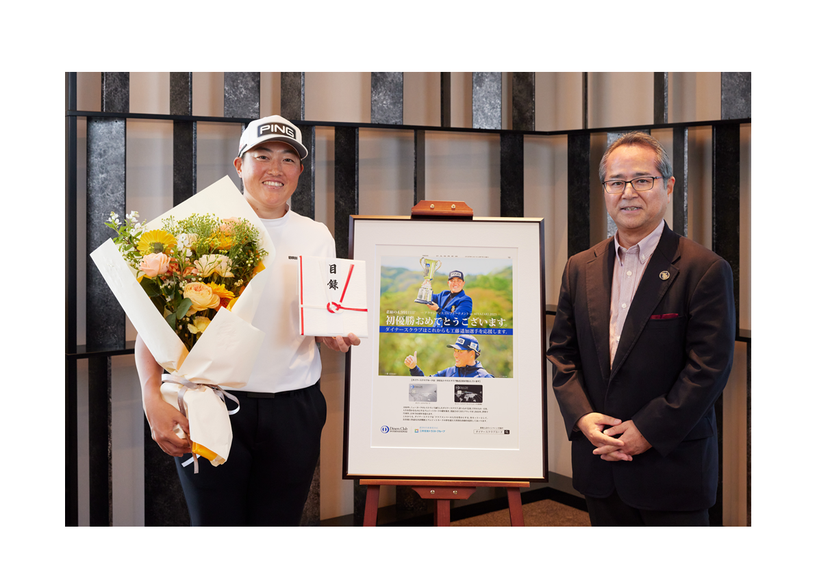 ダイナースクラブカードを発行する三井住友トラストクラブ株式会社(代表取締役社長:五十嵐 幸司、以下当社)は未来を担う若手を応援する取り組みを続けています。その一環として2022年からスポンサーシップ契約を結んでいるプロゴルファーの工藤遥加選手が、2025年3月開催の「アクサレディスゴルフトーナメント in MIYAZAKI 2025」で見事レギュラーツアー初優勝。2025年4月21日(月)に優勝を祝う賞金目録の贈呈式をダイナースクラブ 銀座プレミアムラウンジで行いました。