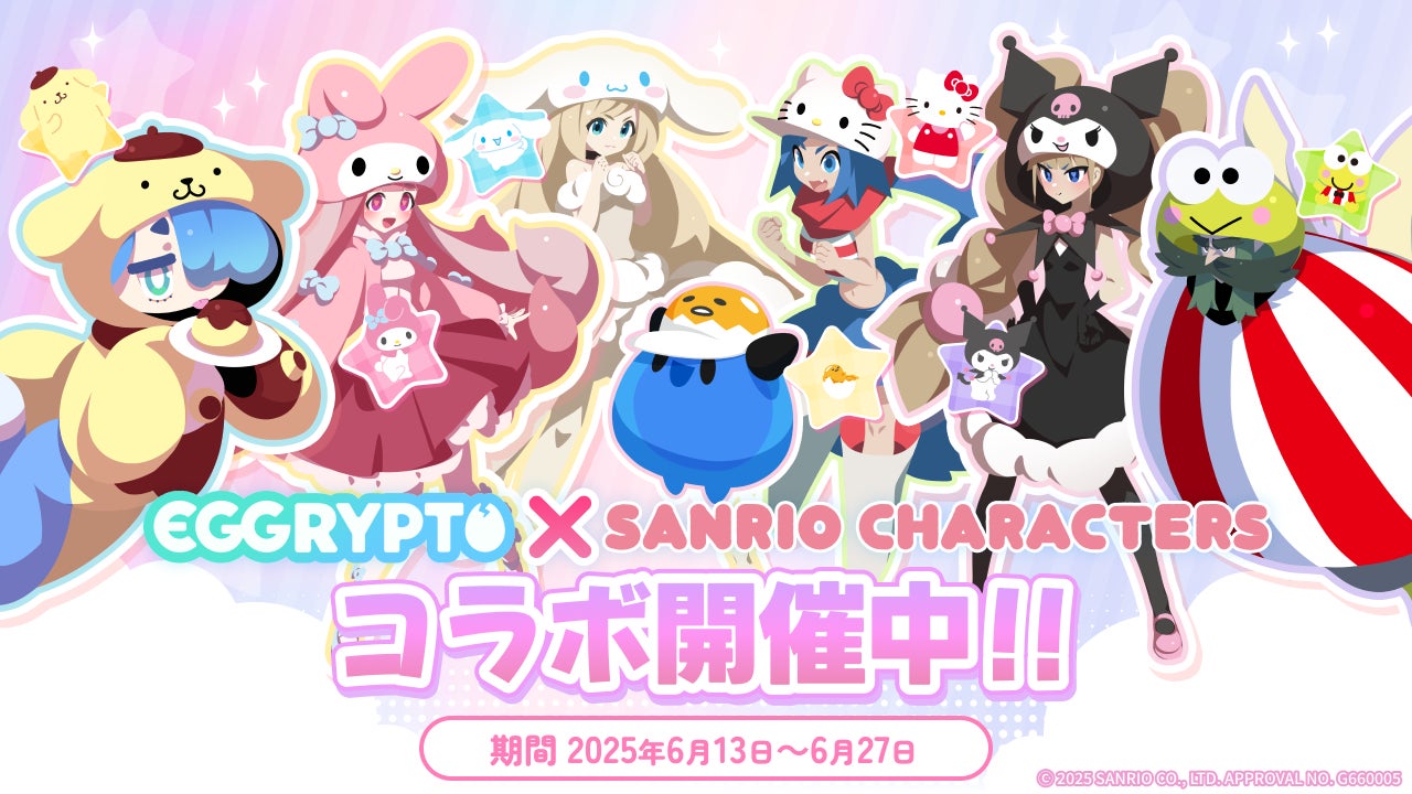 株式会社GameWith(本社:東京都港区、代表取締役社長:今泉卓也、以下「当社」)の子会社である株式会社GameWith NFT(本社:東京都港区、代表取締役社長:奥田大介)が、事業パートナーである株式会社Kyuzan(本社:東京都渋谷区、代表取締役:髙橋 卓巳)と共同で提供しているアプリゲーム「EGGRYPTO(エグリプト)」において、株式会社サンリオの「サンリオキャラクターズ」とのコラボイベントを本日6月13日(金)12時より開催いたします。