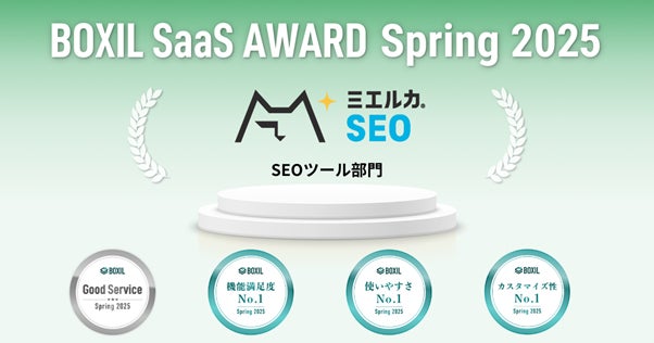 株式会社Faber Company(ファベルカンパニー/本社:東京都港区、代表取締役:稲次正樹・古澤暢央)が提供する「ミエルカSEO」 は、スマートキャンプ株式会社(以下「スマートキャンプ」)が主催する「BOXIL SaaS AWARD Spring 2025」のSEOツール部門で「Good Service」「機能満足度No.1」「使いやすさNo.1」「カスタマイズ性No.1」に選出されました。