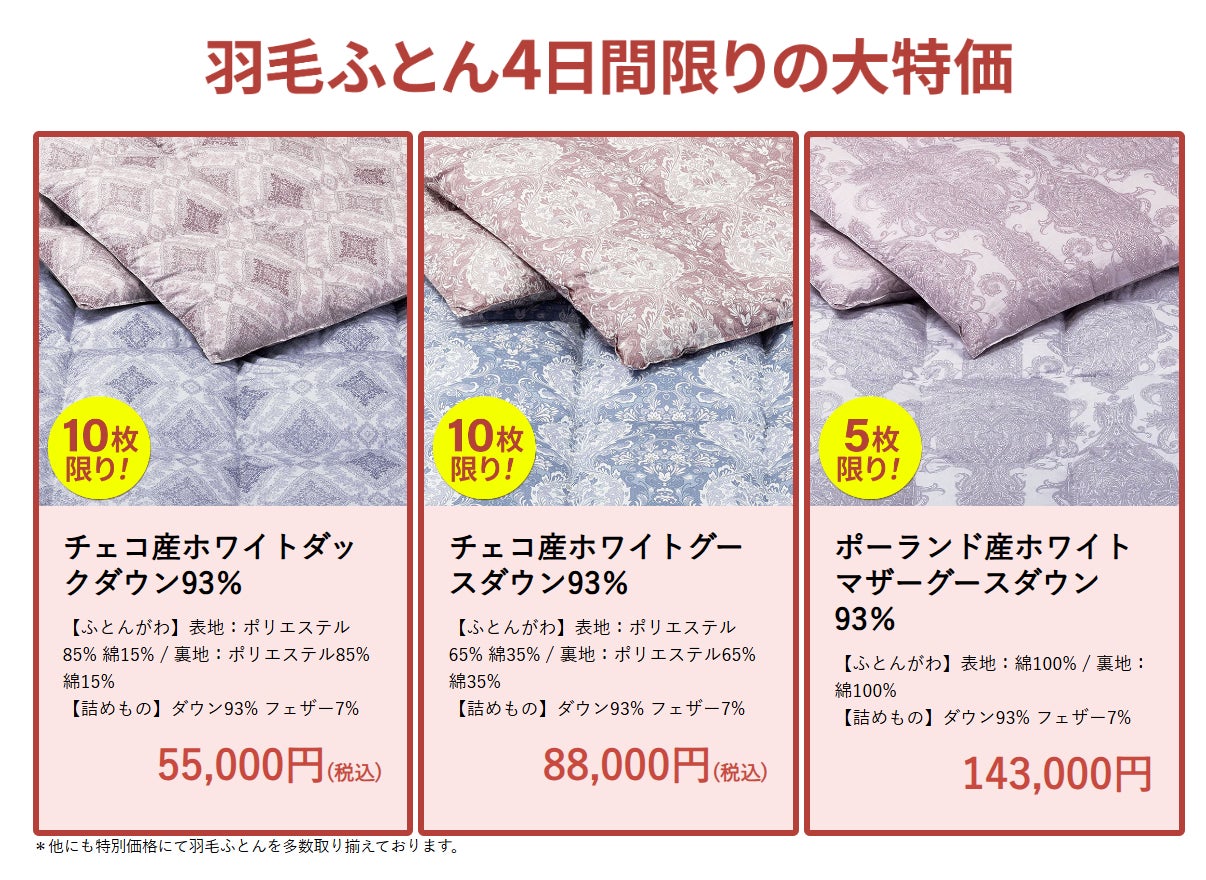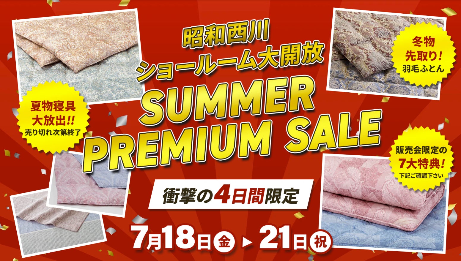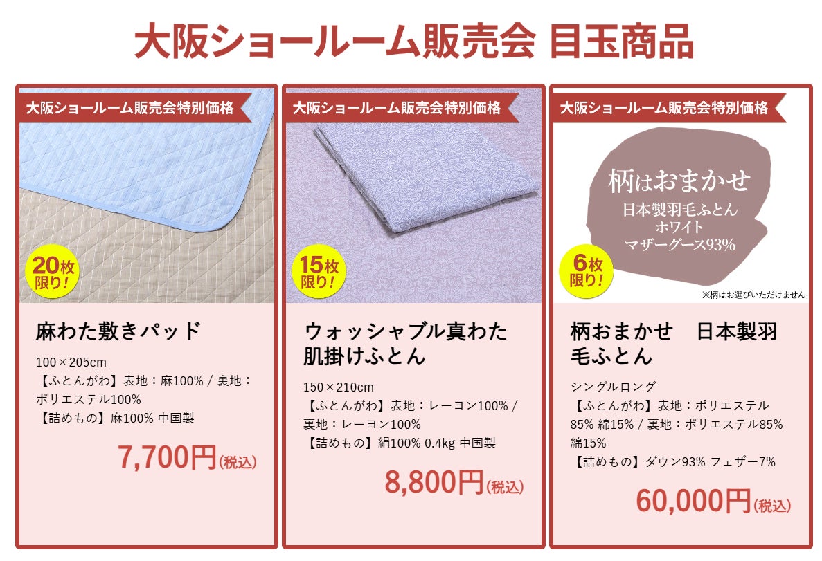 【昭和西川大阪ショールーム販売会概要】 <4日間限定>