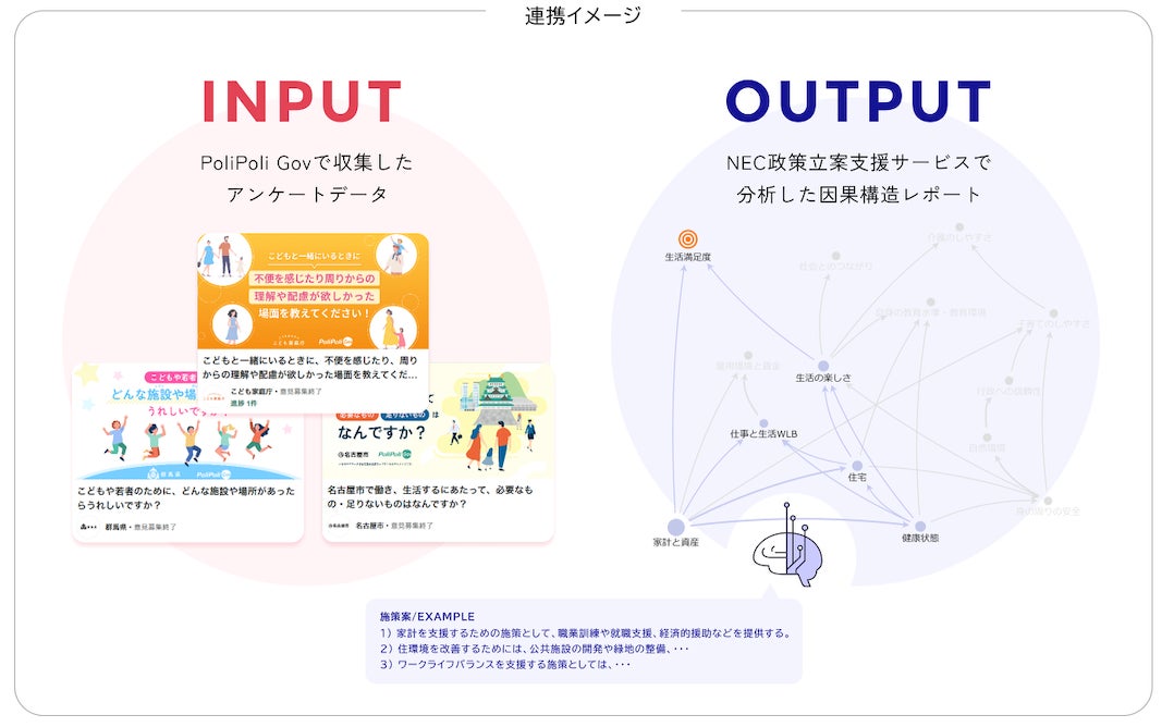 生成AIを活用した政策形成プロセスの高度化を目指し、NECのAI技術を活用した実証実験を開始。市民の意見をより効果的に分析・活用する仕組みを構築しています。