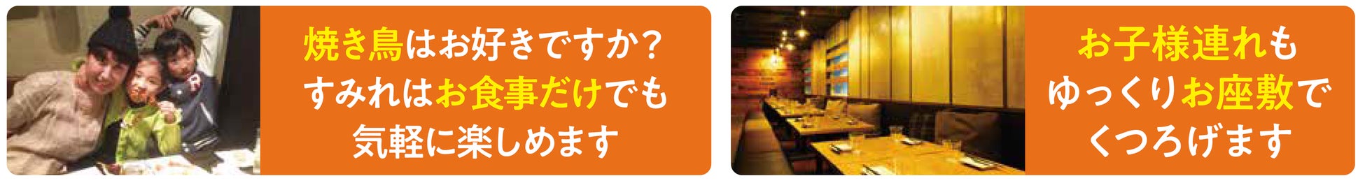 お子様連れもゆっくりお座敷でくつろげますので、混み合う夜の時間は避けたい、昼なら食べに行けるのに…という方はぜひ、この機会にやきとり家すみれはいかがですか?※昼営業店舗は順次拡大中です。