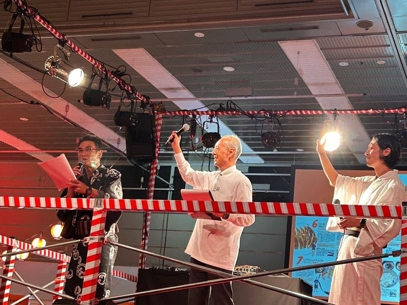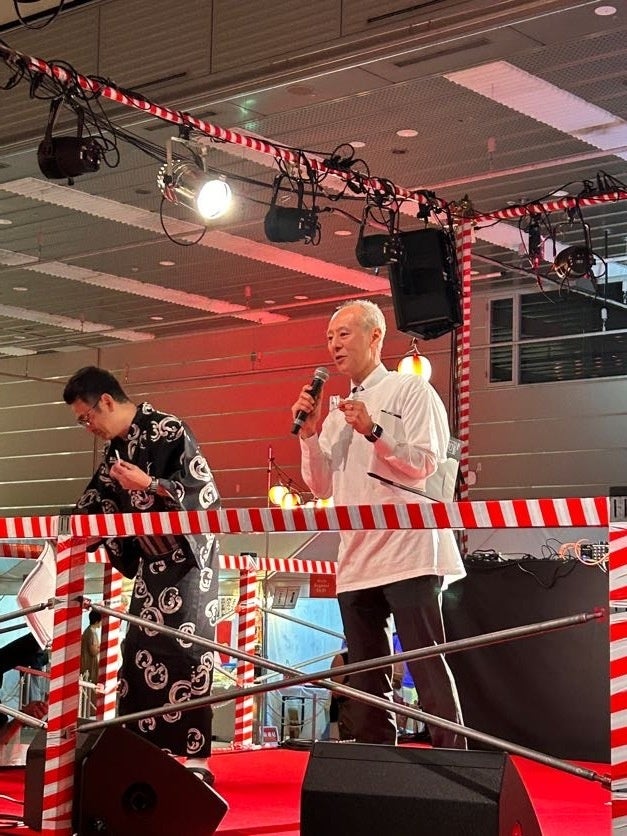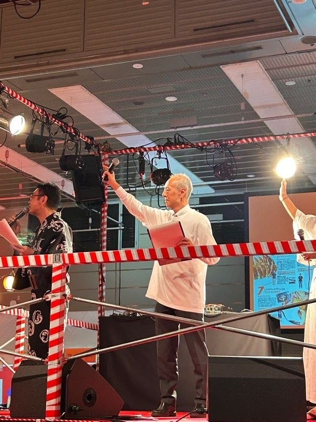当日は、発売から120周年を迎えた仁丹シリーズの節目を祝うため、公式オープニングイベントにて会場全体で「銀粒仁丹」を飲んで、弊社社長・森下がステージ上から「ジンタン、ありやん!」と呼びかけ乾杯を行いました。
