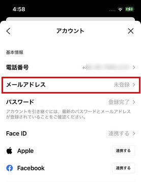 移行先のiPhoneでLINEにログインする際に必要になりますので、LINEアカウントに登録している電話番号やメールアドレス、パスワードを確認しておきましょう。LINEのアカウント情報は、LINEの設定アイコン>「アカウント」から確認・設定できますが、パスワードは確認できないため、忘れてしまった場合には、再度設定しましょう。