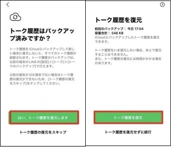 Step6:「はい、トーク履歴を復元します」>「続行」>「トーク履歴を復元」の順にタップします。