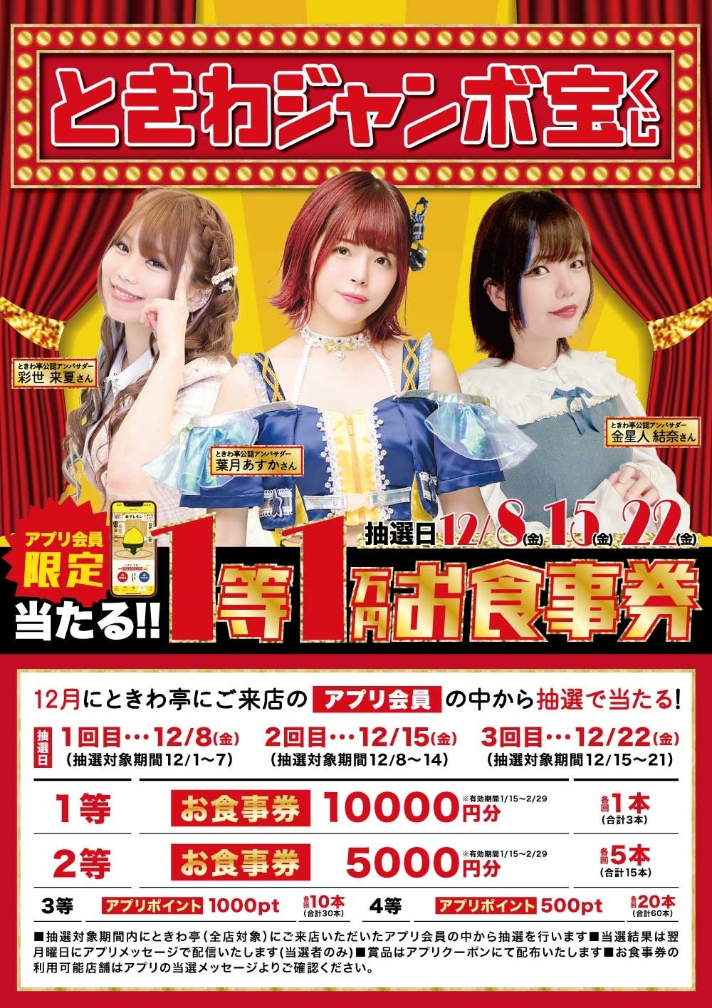 「0秒レモンサワー®仙台ホルモン焼肉酒場 ときわ亭」『ときわジャンボ宝くじ』キャンペーン12月1日(金)〜12月22日(金)開催