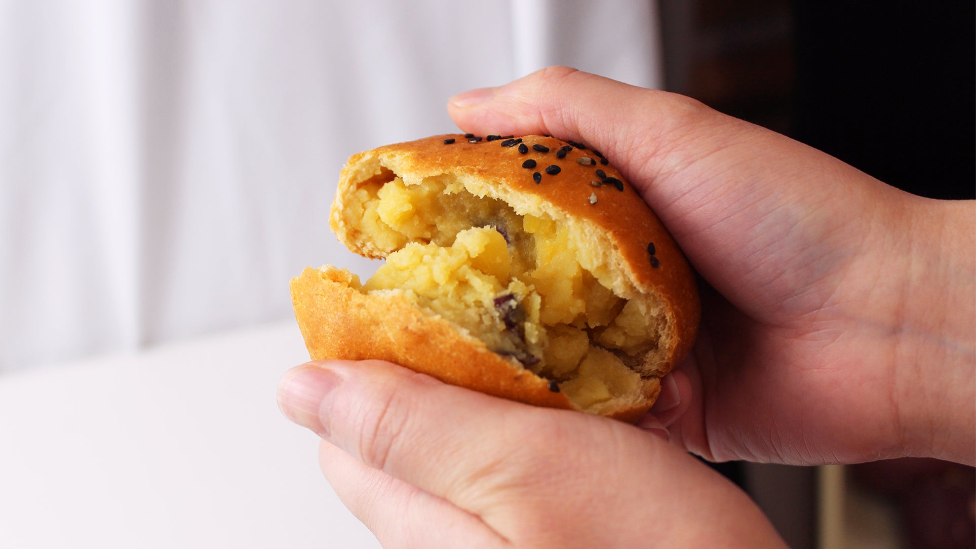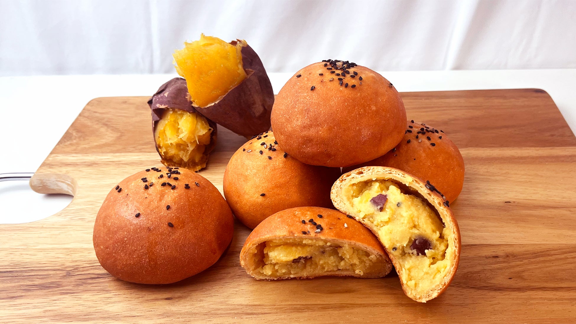 大阪産のブランドさつまいも「夢シルク」を贅沢に使用し、素材の魅力を存分に引き出した「さつまいもあんぱん」。