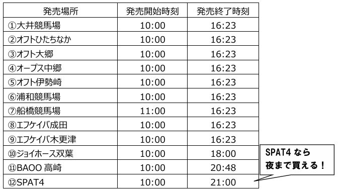 ※SPAT4では前々日発売は実施いたしません。前日発売をご利用ください。
