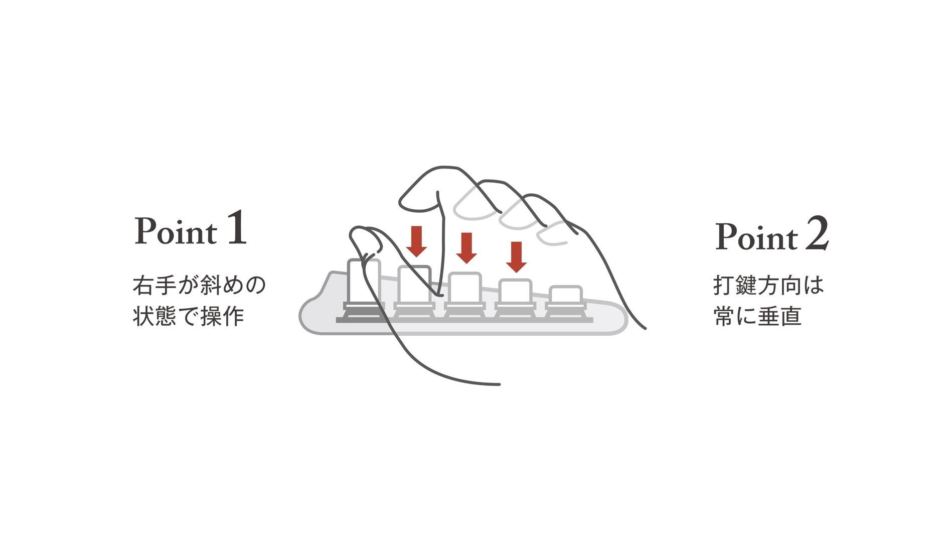 キーを階段状に配置した新構造「人間工学階段キー」を採用、専門機関との分析結果をもとに右手使用時の打ちやすさを追求