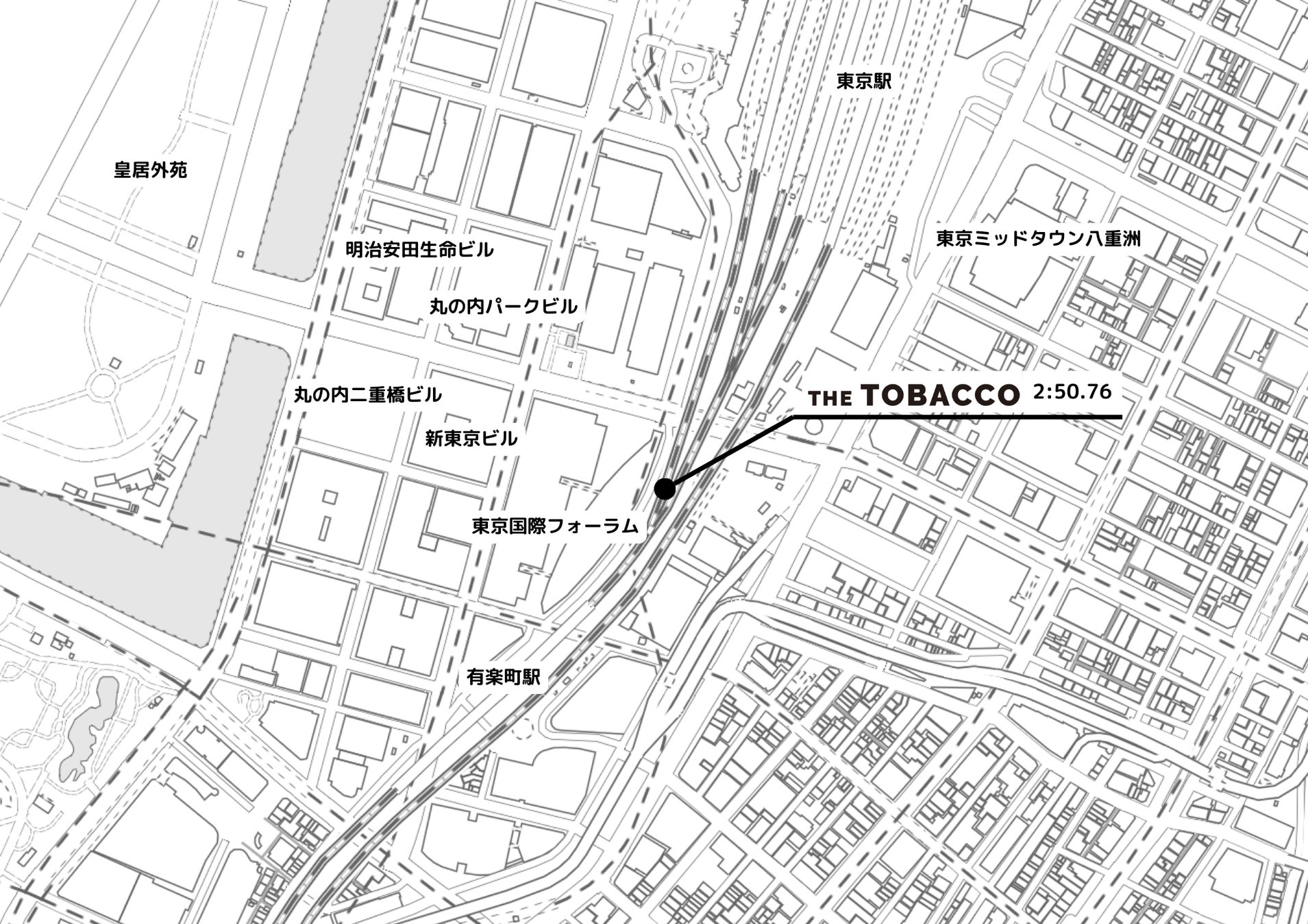 東京駅から有楽町駅を結ぶ路線のガード下には飲食店が軒を連ね、東京国際フォーラムの目の前の一画に位置する「THE TOBACCO 2:50.76」は、