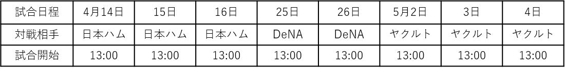 4月14日~5月4日のイースタン・リーグ公式戦8試合の入場券販売とイベント情報について