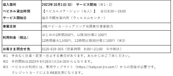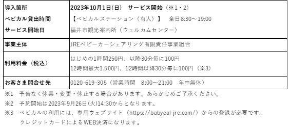 ◆今回、福井市・公益財団法人福井市観光協会と連携し、10月1日より「福井市観光案内所(ウェルカムセンター)」でサービスを開始します。福井県でのベビカルの展開は、初めてとなります。