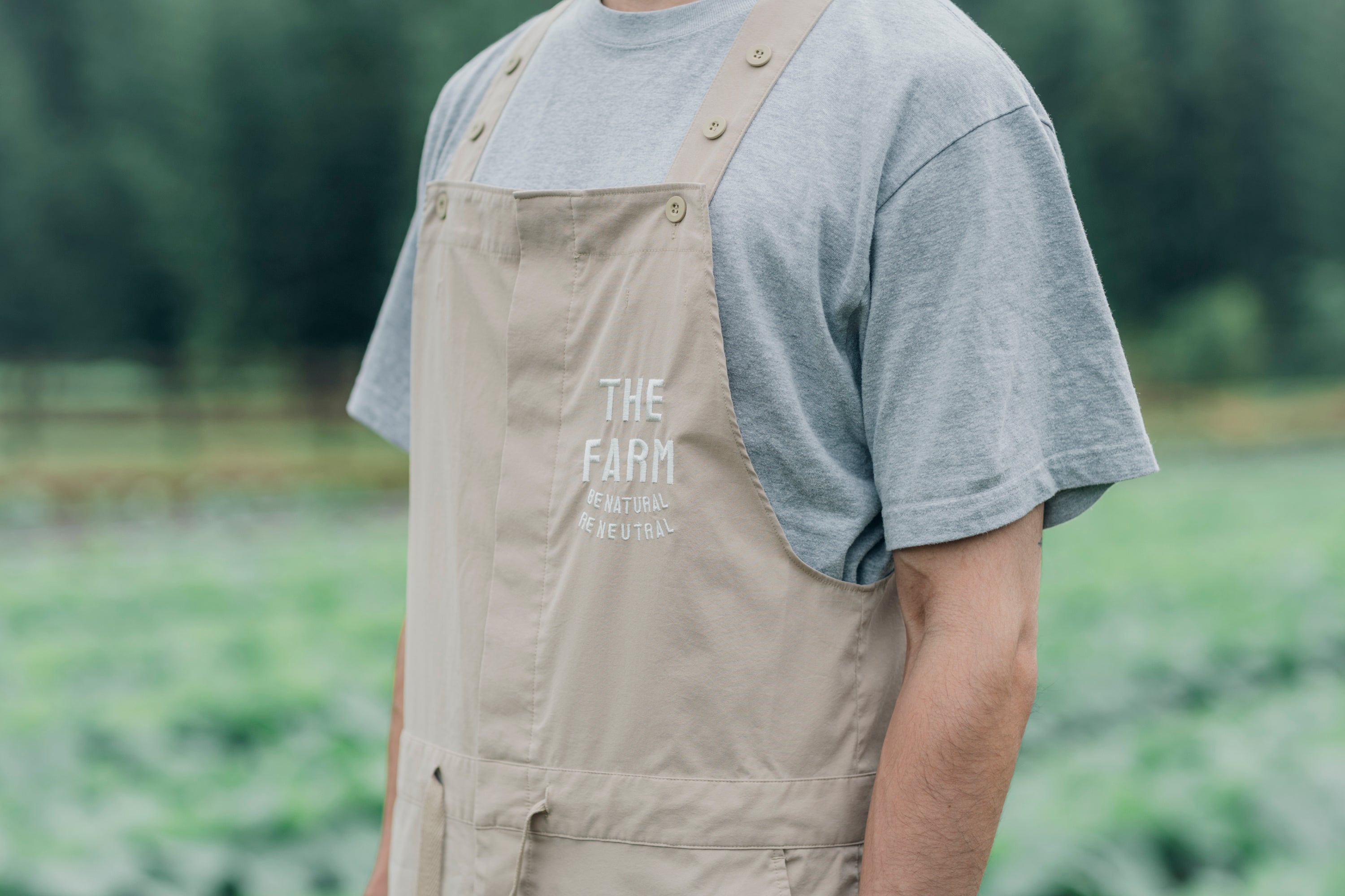最初は「THE FARM」のコンセプトを反映させるために、寝間着の色味も現在と異なり、暗めのグリーンでした。ただ、グリーンのツナギだと農作業感が強くなり過ぎてしまったため、もう少し万人に受け入れられやすく、かつ外で写真を撮った際などにも違和感が出ないよう、スタッフの意見をヒアリングしつつ、シタテルさんに相談しながら制作を進めていきました。