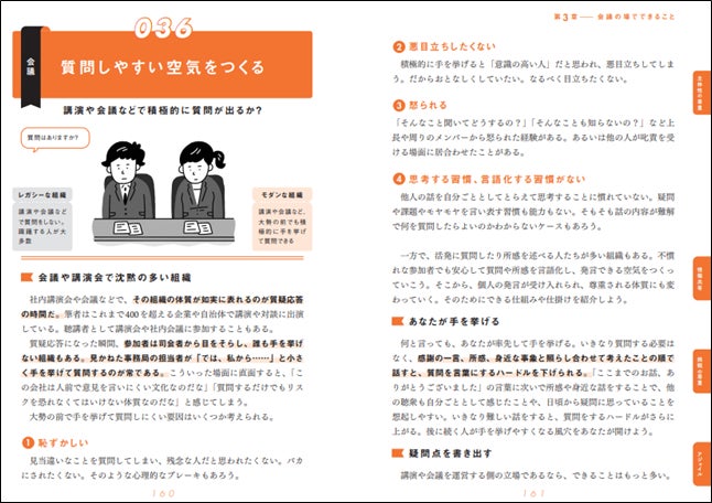 本書は、こうした状況に疑問を持つ、現場のリーダー層やマネジメント層はもちろん、組織の体質に疑問を感じ始めている若手世代や新入社員など、あらゆる世代のビジネスパーソンに向けた必読書となっています。著者はこれまで400以上の企業や自治体、官公庁で組織変革の支援を行ってきた沢渡あまね氏。組織の体質を時代に即した「文化的なもの」に変えていくための100のメソッドを、図解も交えてわかりやすく紹介しています。このメソッドは、沢渡氏が実際に成功している組織の現場を見聞きして実感した、明日から即実践できるようなものばかりとなっています。