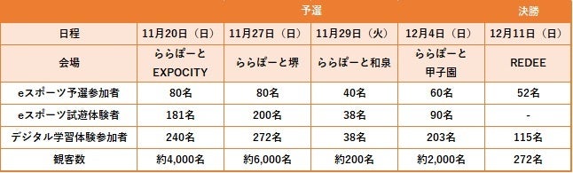 日本最大級のデジタル教育施設「REDEE(レディー)」(所在地:大阪府吹田市、運営:レッドホースコーポレーション株式会社、以下 REDEE)は、三井不動産株式会社(所在地:東京都中央区、以下 三井不動産)及び関西エリアに所在する商業施設「三井ショッピングパーク ららぽーと」4施設(ららぽーとEXPOCITY:大阪府吹田市、ららぽーと堺:大阪府堺市、ららぽーと和泉:大阪府和泉市、ららぽーと甲子園:兵庫県西宮市)とともに展開した「ららぽーとeスポーツ杯関西地区No.1決定戦」の決勝戦を12月11日(日)に開催しました。